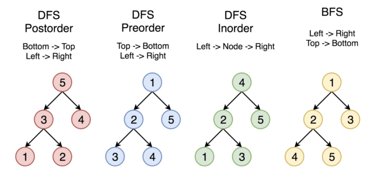 - 방문하는 순서에 따라 후위순회, 전위순회, 중위순회, 레벨순회가 존재.