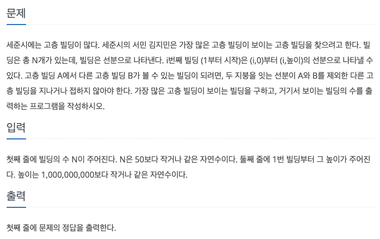 단 왼쪽, 오른쪽 건물들을 확인할 때 사이 건물들과의 기울기도 계속해서 비교를 해준다.